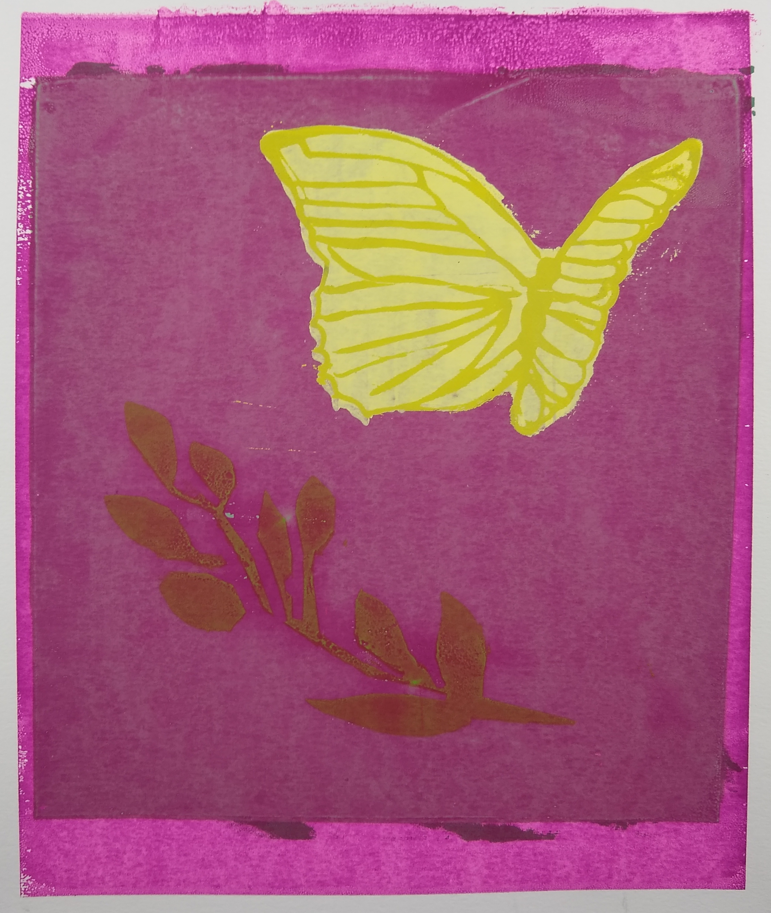 Magenta Butterfly Botanical Print 11 x 14 Butterfly Silkscreen print Edition of 2 This was the beginning stage of my magenta butterfly prints. I ended up making two different versions. One with bright leaves and one without the bright leaves but with bright pink flowers. Share this: Click to share on X (Opens in new window) X Click to share on Facebook (Opens in new window) Facebook Click to share on Reddit (Opens in new window) Reddit Like Loading... Related